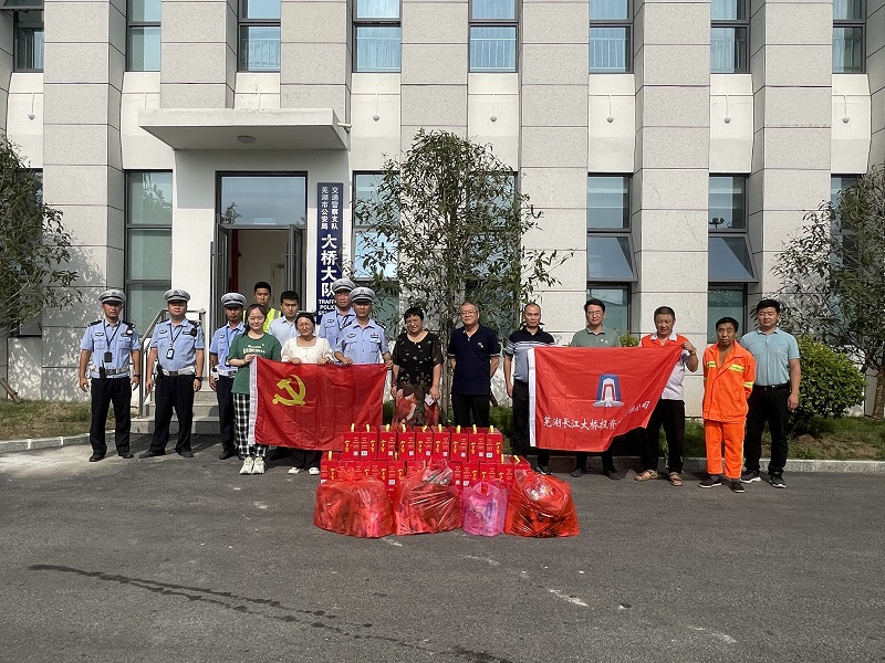為表達(dá)對(duì)辛苦執(zhí)勤的一線交警及道路管養(yǎng)人員的敬意和慰問(wèn),7月18日下午,蕪湖長(zhǎng)江大橋投資建設(shè)有限公司開(kāi)展了共建慰問(wèn)送清涼活動(dòng),公司為一線交警及城建集團(tuán)道路管養(yǎng)人員送上了清涼的飲用水、防曬用品等物資。