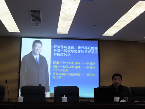 張勇教授圍繞中共中央辦公廳關于意識形態(tài)的指示精神和貫徹落實中央八項規(guī)定,以群眾路線教育實踐活動與實現(xiàn)中國夢的現(xiàn)實意義為切入點,引導黨員干部樹立群眾觀點,轉變工作作風,解決突出問題,在密切干群關系,樹立好為民務實清廉形象,在全心全意為人民服務中取得實際成效。